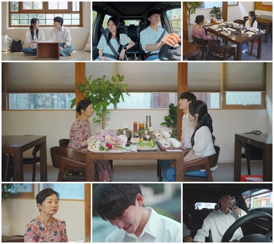 다음 날 성우X지우는 성우 어머니와 점심 식사를 하기 위해 남양주의 한 식당으로 간다. 성우는 어머니가 도착하기 전, “우리 엄마가 대장부 같은 스타일인 데다, 경상도 분이라 말투가 세게 느껴질 수도 있다”라고 지우에게 조심스레 귀띔한다. 이후로도 “어떡하지...우리 엄마”라면서 안절부절 못 하는데, 잠시 후 어머니가 식당에 들어서자 지우는 공손히 인사한다. 그런데 어머니와 식사 후 헤어지자 성우는 돌연 “이런 것에 응어리가 있었나 봐”라면서 지우 앞에서 펑펑 눈물을 쏟는다. 대체 성우가 어머니와의 첫만남을 마친 뒤 지우에게 눈물을 보인 이유가 무엇인지, 이날의 만남에 관심이 모아진다.