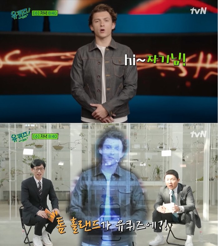 '스파이더맨: 노 웨이 홈'의 톰 홀랜드가 tvN '유 퀴즈 온 더 블럭'을 통해 한국의 시청자들과 만난다. '특별한 DNA'라는 주제로 진행되는 이번 방송에 톰 홀랜드는 화상으로 인사를 전한다. 톰 홀랜드는 "하이 자기님" 이라며 유창한 한국어로 인사를 하는가 하면 공식 질문인 "유퀴즈~?"까지 전하며 '큰 자기' 유재석과 '작은 자기' 조세호를 환호하게 만들었다는 후문이다. 톰 홀랜드가 깜짝 출연하는 tvN '유 퀴즈 온 더 블럭'은 오늘 저녁 8시 40분 방송 예정이다.