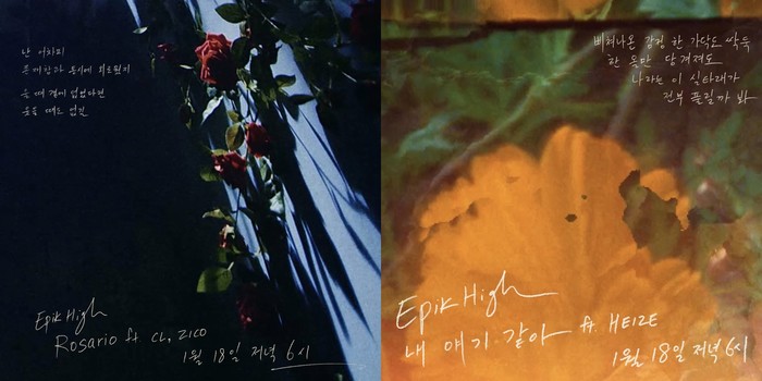 이날 더블 타이틀곡의 리릭 티저 이미지도 공개돼 팬들의 관심을 집중시켰다. “삐쳐나온 감정 한 가닥도 싹둑. 한 올만 당겨져도 나라는 이 실타래가 전부 풀릴까 봐” - ‘내 얘기 같아’, “난 어차피 존재함과 동시에 외로웠지. 울때 곁에 없었다면 웃을 때도 없길.” - ‘ROSARIO’ 가사 한 줄씩만 공개되었음에도 에픽하이 특유의 감성과 문장력으로 SNS 반응을 뜨겁게 달구고 있다.