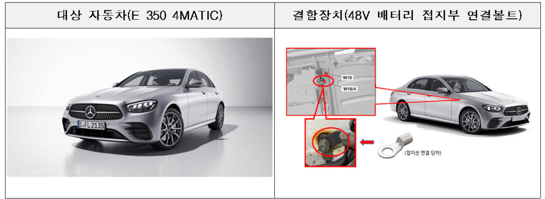 | 리콜 조치된 벤츠 E 350 4MATIC. [자료=국토교통부] |
