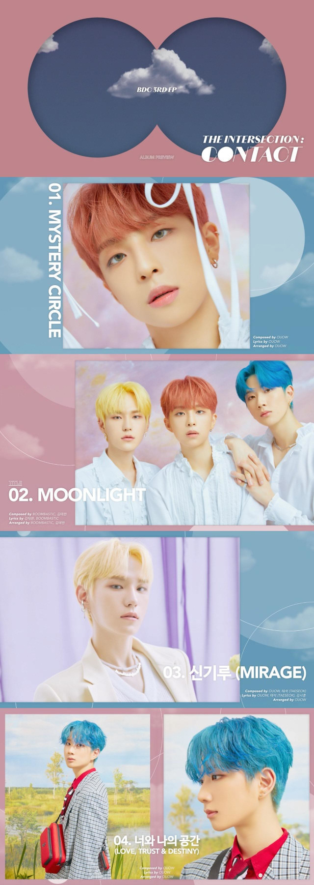 중독적인 리드 사운드가 돋보이는 강렬한 힙합 댄스 트랙 'MYSTERY CIRCLE'을 시작으로, 달빛의 몽환적인 이미지를 극대화한 신비로운 분위기의 타이틀곡 ’MOONLIGHT', 매력적인 기타 리프로 듣는 재미를 더한 일렉트로 팝 트랙 ‘신기루 (MIRAGE)', 호소력 짙은 목소리로 진한 감동을 선사할 팝 발라드 곡 ‘너와 나의 공간 (LOVE, TRUST & DESTINY)'까지 BDC만의 독보적인 사운드와 차별화된 이야기들이 유기적으로 연결되어 있는 이번 앨범은 BDC의 눈부신 성장을 확실하게 증명해내며 이들의 행보에 새로운 전환점이 될 것으로 전망된다.