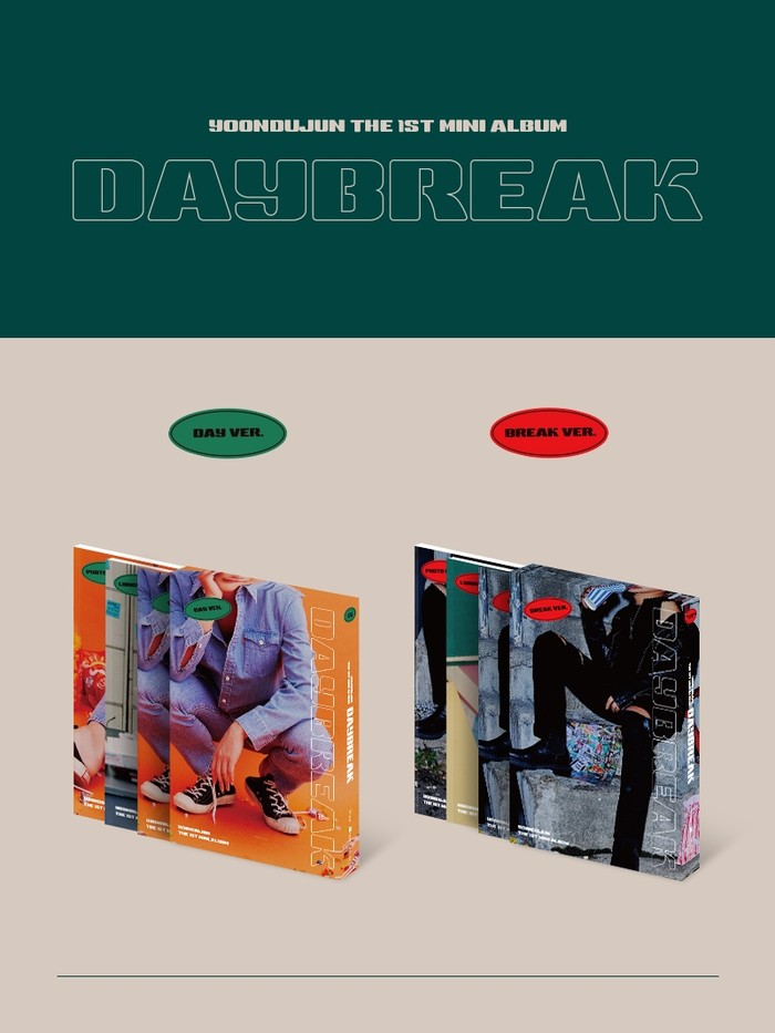 17일 소속사 어라운드어스는 공식 홈페이지와 SNS 채널을 통해 오는 27일 발매되는 윤두준의 첫 번째 솔로 앨범 'Daybreak' 앨범 사양 이미지를 공개했다.
