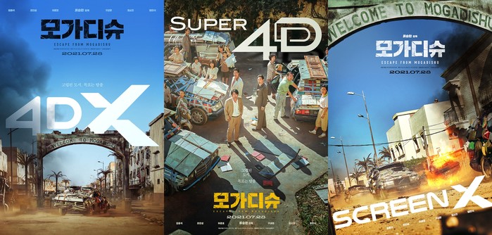 또한 “<모가디슈>의 ScreenX는 정면은 물론 좌우 3면 화면을 통해 이국적인 풍광과 압도적인 스케일을 가장 넓은 시야각으로 보여주어 관객들의 몰입도를 높이고 생생한 현장감을 제공한다. 또한 영화의 하이라이트인 군중 액션씬의 생동감을 그대로 구현하며 관객들의 영화 관람을 특별한 영화적 체험으로 한 단계 끌어올려줄 것이다.
