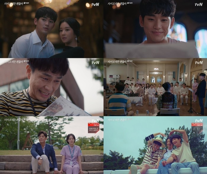 또 이들 곁에서 지혜로운 조언을 건네고 따스한 밥 한 끼를 챙겨주는 어른들과 답답한 속을 후련하게 해주는 친구들의 존재는 세상은 결코 혼자 살아가는 것이 아닌 서로 의지하며 어우러져 사는 것임을 다시금 깨닫게 했다. 뿐만 아니라 문강태, 고문영, 문상태의 마음을 비추는 거울 같은 역할을 한 괜찮은 정신병원 환자들의 사연은 짙은 여운을 남겼다.