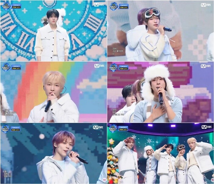 파우(POW, 요치 현빈 정빈 동연 홍)는 29일 방송된 Mnet ‘엠카운트다운’에서 새 싱글 타이틀곡 ‘Come True’ 무대를 최초 공개하며 본격적인 활동에 돌입했다. 신곡의 메시지를 오롯이 담아낸 이번 무대는 겨울 감성이 짙게 녹아든 연출과 따뜻한 분위기로 시청자들의 시선을 단숨에 사로잡았다.