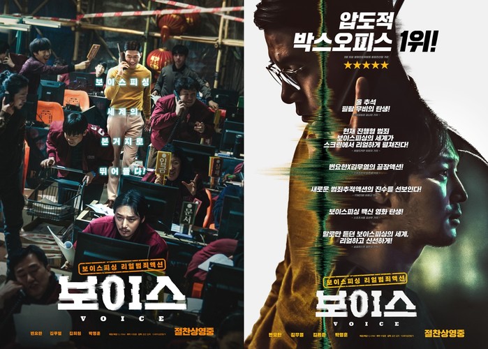 '보이스'는 폭발적 입소문으로 박스오피스 1위에 오른 것을 기념해 영화를 향한 호평을 담은 입소문 포스터를 공개했다. ’보이스’를 관람한 관객들은 “통쾌한 범죄추적액션의 새로운 대표작 탄생”, “변요한의 리얼 액션이 대리만족된다”, “곽프로 한대 치고 싶었는데, 변요한이 액션으로 쳐줘서 속이 다 시원하다”, “변요한 진짜 이 악물고 액션했네” 등 통쾌한 범죄소탕 액션에 극찬을 아끼지 않고 있다. 또한 “영화 끝나고 나니까 부모님한테 전화하고 싶어지는 마법”, “보이스피싱 소름! 엄마, 아빠 꼭 보여드려야겠다” 등 보이스피싱 예방을 위해 소중한 지인에게 영화를 추천하겠다는 반응까지 이어지고 있다. 이처럼 ’보이스’는 올 추석 온 가족 필람 영화로 자리매김하며 흥행에 가속도가 붙을 것으로 기대 된다.