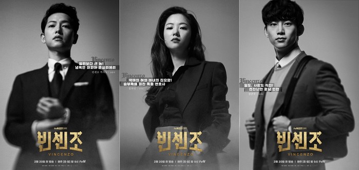 ‘철인왕후’ 후속으로 오는 2월 20일 첫 방송되는 tvN 새 토일드라마 ‘빈센조’(연출 김희원, 극본 박재범, 기획 스튜디오드래곤, 제작 로고스필름) 측은 3일, 센캐들의 살벌한 전쟁을 예고하는 단체 캐릭터 포스터를 공개했다. 분위기를 압도하는 송중기, 전여빈, 옥택연, 김여진, 곽동연의 강렬한 시너지가 호기심을 자극한다.