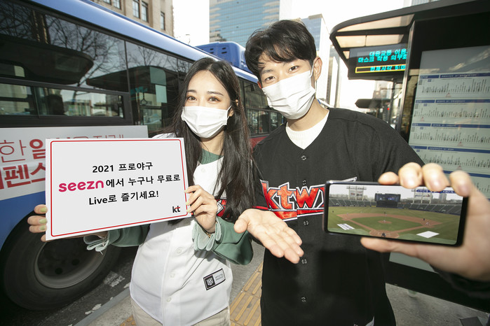 KT는 2021 프로야구 시범경기 및 정규시즌 생중계를 기념해 고객 대상 경품 이벤트를 실시한다. Seezn 앱에서 개막전 승리 팀을 맞히면 추첨을 통해 갤럭시 핏2 등 다양한 경품을 제공한다.
