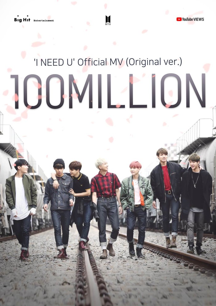 지난 2015년 5월 공개된 ‘I NEED U’ 오리지널 버전 뮤직비디오의 유튜브 조회수가 15일 오후 6시 1분경 1억 건을 넘어섰다. 이로써 방탄소년단은 통산 30번째 1억뷰 뮤직비디오를 보유, 한국 가수 자체 최다 신기록을 자체 경신했다.