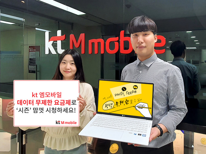 [하비엔=노이슬 기자] KT의 알뜰폰(MVNO) 그룹사 KT 엠모바일이 KT OTT 서비스 시즌(Seezn)의 기본 이용권인 ‘시즌 플레인’을 평생 제공하는 데이터 무제한 요금제 ‘데이터 맘껏 ON 비디오 시즌’을 출시한다고 1일 밝혔다.