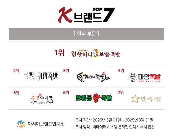 | ‘K-브랜드 톱7’ 한식 부문. [사진=아시아브랜드연구소] |