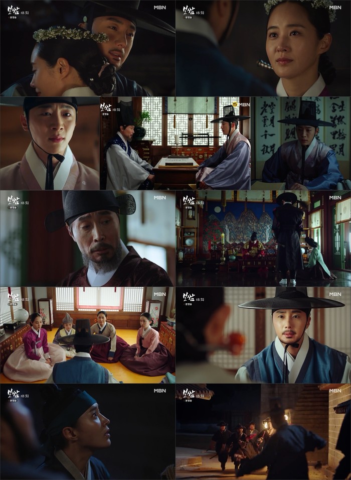 하지만 서궁의 담을 넘으려는 순간, 군사들에게 발각됐다. 바우가 홀로 막아내기엔 역부족, 눈앞에서 수경을 놓치기 일보직전의 엔딩으로 긴장감은 최고조로 올랐다. 앞서 바우는 대엽에게만 도피처를 알린 바. 그가 역모에 가담하기 위해 두 사람을 쫓은 것은 아닌지, 그의 진짜 속내 역시 궁금증을 폭발시켰다. MBN ‘보쌈-운명을 훔치다’는 매주 토, 일 밤 9시 40분에 방송된다. 본방송 시작 동시에 국내 대표 온라인 동영상 서비스 웨이브(wavve)가 OTT 독점 공개한다.