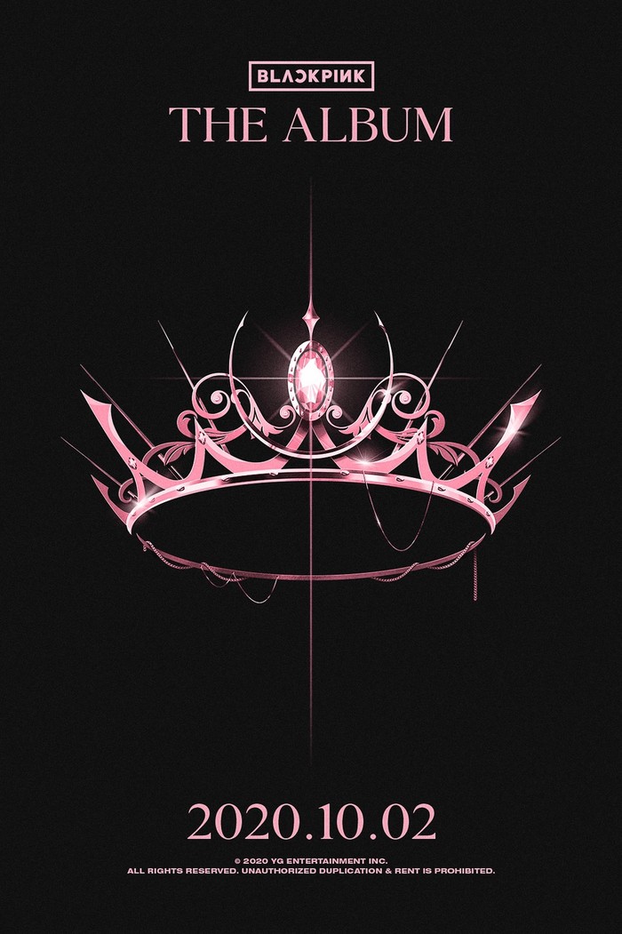 블랙 컬러 바탕에 반짝이는 핑크색 왕관이 시선을 사로잡는다. 'THE ALBUM'과 '2020.10.02' 표기 외 군더더기 없는 디자인 속 블랙핑크의 독보적 입지와 자신감이 엿보인다.
