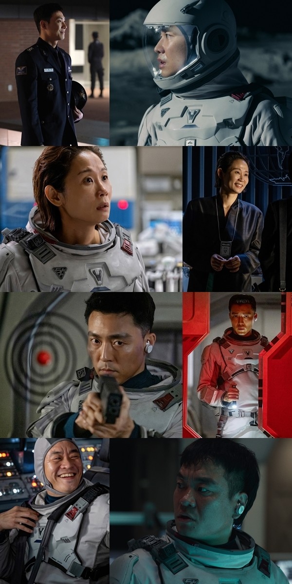 “제작자로 참여하면서 이런 좋은 배우들을 옆에서 지켜볼 수 있었다는 것만으로도 값진 시간이었다”는 정우성의 말처럼 극을 안정감 있는 궤도로 이끈 것은 바로 명품 배우들의 열연이었다. 먼저 영화와 드라마를 넘나들며 강렬한 존재감을 발산해온 이준이 수석 엔지니어 류태석 역을 맡아 신선한 에너지를 불어넣는다. 류태석은 목숨을 건 위험한 임무에 자원해 궁금증을 불러일으키는 인물로 뛰어난 업무수행 능력을 갖췄다. 평소 우주에 대한 정보를 찾아볼 정도로 우주에 관심이 많았던 이준은 촬영 중간에도 무중력 모션 연습에 매진하며 “중력을 거스르는 연기”를 완벽히 소화해냈다. 최항용 감독은 “정형화되지 않은 날 것 같은 연기가 좋았다”고 전하며 이준이 보여줄 새로운 모습에 호기심을 자아내고 있다. “우리나라에서 한 번도 시도해 보지 않은 프로젝트인 만큼 기쁜 마음으로 참여했다”라며 작품에 대한 남다른 애정을 드러낸 김선영은 사명감 하나로 탐사대에 합류한 팀 닥터 홍닥을 연기한다. 홍닥은 위험에 처한 동료가 있으면 한 치의 고민 없이 뛰어드는 인물로 송지안 박사(배두나)를 도와 폐쇄된 연구기지에 잠긴 비밀에 다가간다. 정우성은 “김선영은 묘한 매력을 지닌 배우다. 홍닥은 김선영 배우의 매력 덕분에 우뚝 설 수 있었다”라며 캐릭터에 숨결을 불어넣은 김선영의 활약을 예고했다. 드라마 [부부의 세계], [60일, 지정생존자], [봄밤] 등에서 묵직한 연기를 선보여온 이무생은 보안 팀장 공수혁을 연기한다. “스스로의 연기를 진지하게 돌아보고, 의심하며 캐릭터에 접근하는 노력하는 배우”라는 정우성의 말처럼 끝없는 연구로 캐릭터와 완벽히 동화된 이무생은 어떤 상황에서도 평정심을 잃지 않고 임무를 수행해 나가는 공수혁을 단단하게 그려내며 팀의 중심을 잡는다. 영화 '유체이탈자', '도굴', '삼진그룹 영어토익반', 드라마 [365 : 운명을 거스르는 1년] 등에서 종횡무진 활약하고 있는 이성욱은 탐사대의 분위기 메이커인 조종사 김썬으로 변신했다. 정우성이 “에너지가 좋고 순발력이 뛰어나다. 애드리브도 원래 있었던 대사처럼 맛깔나게 소화해냈다”며 칭찬한 이성욱은 적재적소에 활력을 불어넣으며 재미와 긴장감을 더할 예정이다.