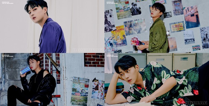 공개된 이미지는 첫번째 ‘Day’ 콘셉트와 상반되는 분위기를 담은 ‘Break’의 콘셉트 포토로 구성되어 있다. 화이트 배경에 선 윤두준은 날카로이 카메라를 응시하거나 흩어진 포스터 사이로 구겨진 사진을 든 채 눈빛만으로 시선을 압도하고 있다.