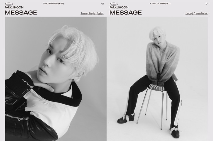 박지훈은 23일 0시 공식 SNS에 첫 번째 정규앨범 ‘MESSAGE (메세지)’의 콘셉트 프리뷰 포스터 2장을 게재했다.