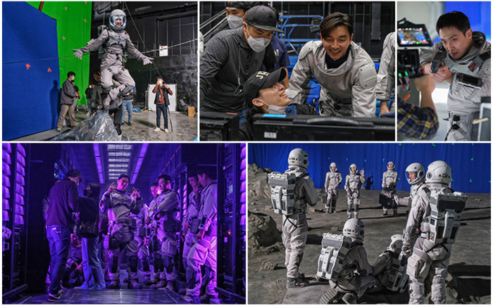 공개된 스틸은 미스터리한 공간인 달과 발해기지에 입성한 배우들이 우주복을 입고 촬영에 몰입하거나 화기애애하게 쉬는 시간을 보내는 모습을 담았다. 촬영 초반, 예상보다 무거운 의상과 장비로 애를 먹었던 배우들은 서로에게 고충을 털어놓으며 빠른 속도로 가까워졌고 무중력과 저중력 촬영을 위해 와이어 훈련을 거듭하는 등 새로운 도전을 함께하며 더욱 돈독해졌다.