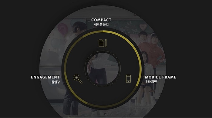 또한 기존의 TV나 스크린에 맞춰진 가로형 포맷을 넘어, 세로형, 정방형, 가변형 등 다양한 스크린 프레임을 활용해 이른바 ‘모바일 프레임’ 포맷을 만들어 나갈 계획이다. 가로형 스크린에 맞춰 제작되는 방식이 아닌, 모바일을 통한 콘텐츠 소비자의 편의와 콘텐츠의 재미, 몰입감을 극대화하기 위한 최적의 프레임으로 콘텐츠를 기획, 제작하겠다는 것이다.
