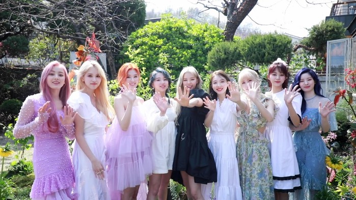 영상 속 멤버들은 밝은 햇살이 비치는 정원에서 9인 9색 청순함이 돋보이는 드레스를 입고서, 해사한 미소로 팬들을 맞이했다.