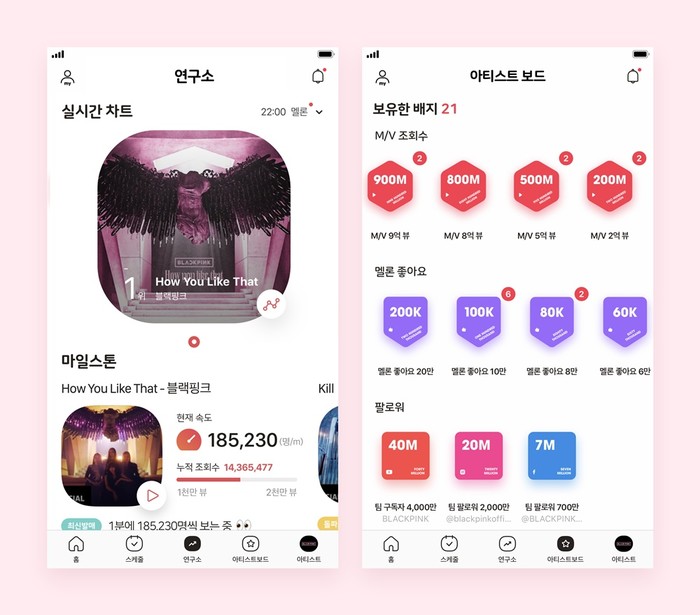 이 같은 기록은 지난 6월 11일 정식 출시된 ‘내 손안의 덕메이트, 블립(blip)’ 앱 내 실시간 차트와 뮤직비디오 조회수 등 팬들에게 중요한 데이터를 스마트하게 알려주는 ‘연구소’에서 확인 가능하다.