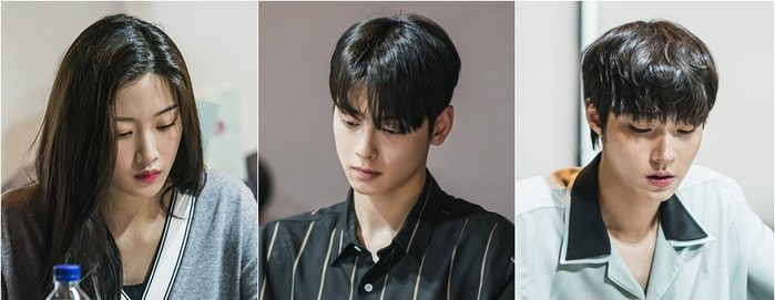 이와 함께 ‘이수호’ 역을 맡은 차은우는 “끝까지 건강하고 행복하게 촬영했으면 좋겠다”며 싱긋 미소를 지어 현장에 기분 좋은 에너지를 전파했다. 이후 차은우는 첫 리딩임에도 이수호 캐릭터에 완벽히 녹아 들어 차가운 눈빛과 무뚝뚝한 말투로 냉미남 매력을 발산한 한편, 문가영과 호흡을 맞출 때면 반전 멍뭉미를 터뜨려 여심을 설레게 했다.