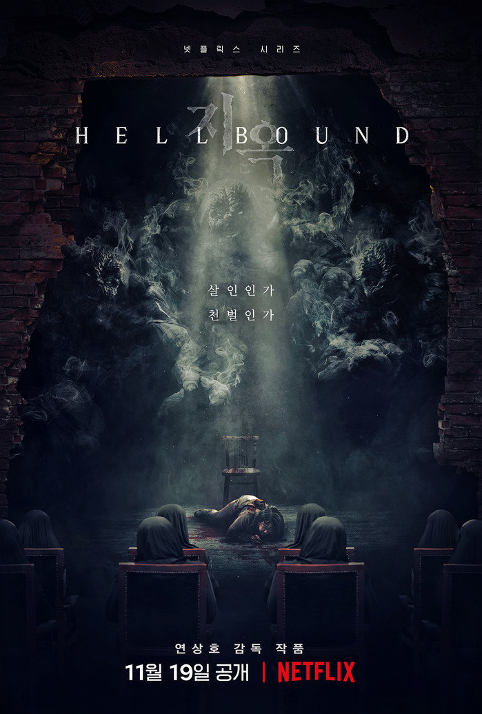 예고 없이 등장한 지옥의 사자들에게 사람들이 지옥행 선고를 받는 초자연적인 현상이 발생하고, 이 혼란을 틈타 부흥한 종교단체 새진리회와 사건의 실체를 밝히려는 이들이 얽히면서 벌어지는 이야기를 그린 넷플릭스 시리즈 '지옥'이 1차 메인 포스터를 공개했다.