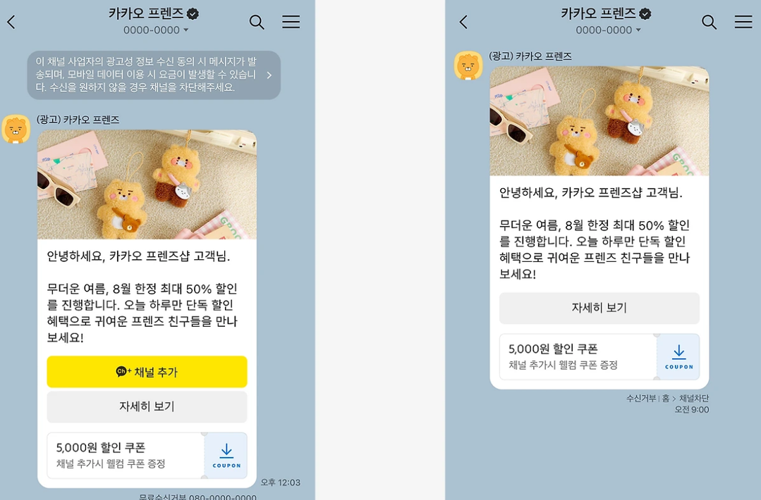 메시지 상단에 발신자를 명확히 표시하고, 이용자가 원치 않을 경우 ‘채널 차단’ 버튼이나 080 번호로 손쉽게 수신 거부할 수 있도록 했다.