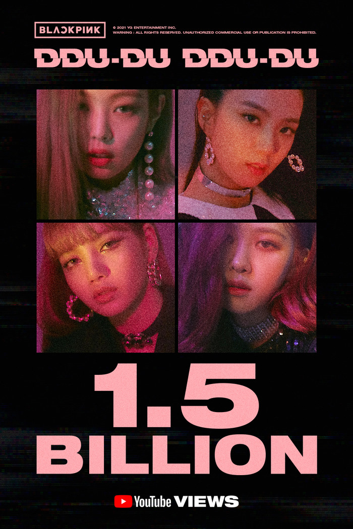 23일 YG엔터테인먼트에 따르면 블랙핑크의 '뚜두뚜두 (DDU-DU DDU-DU)' 뮤직비디오는 이날 오후 6시 36분께 유튜브에서 조회수 15억회를 넘어섰다. 지난 2018년 6월 15일 공개된 지 약 2년 8개월 만에 쌓은 금자탑이다.