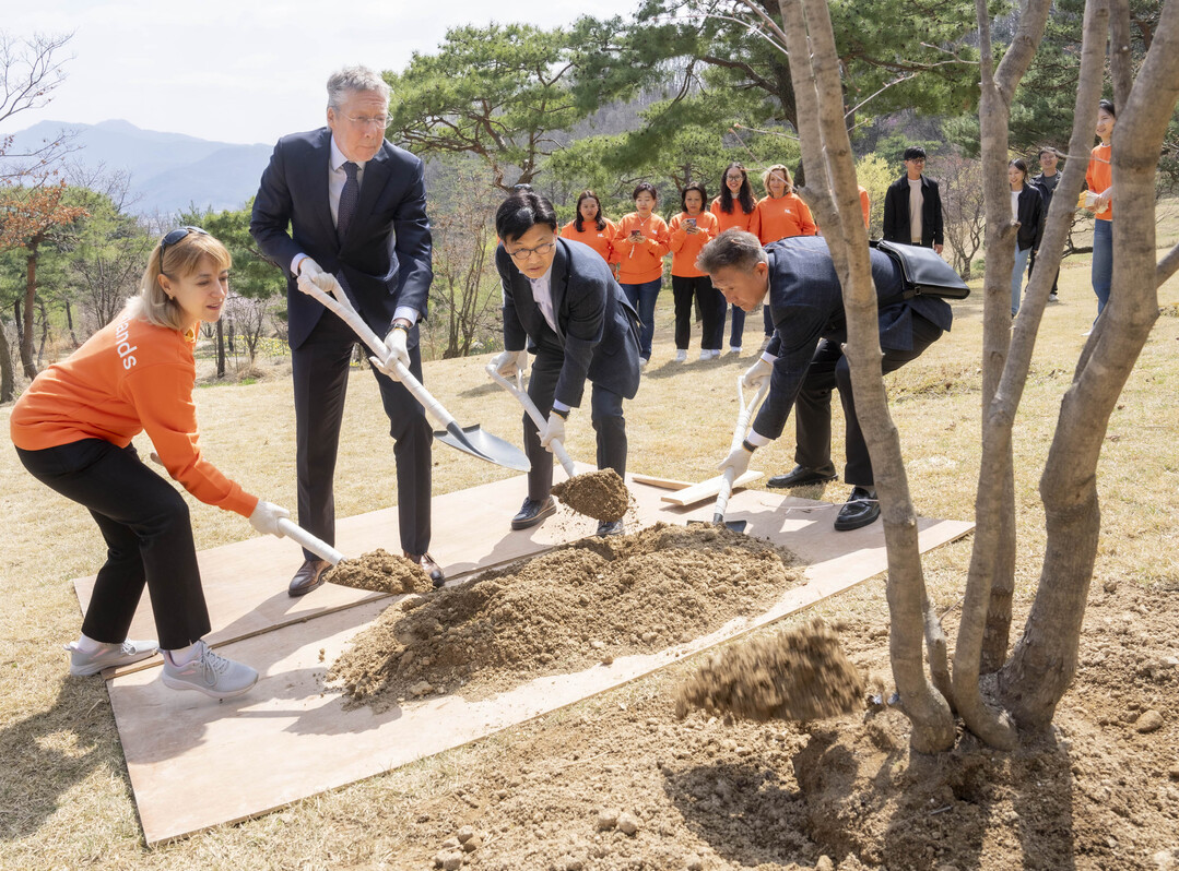이날 반 더 플리트 대사는 튤립축제가 한창인 에버랜드에서 우리나라 국민과 소통하고 매화, 벚꽃이 만발한 하늘정원길을 둘러보며 봄꽃을 감상했다. 또 식목일을 기념해 명품 숲 ‘포레스트 캠프’에 단풍나무를 식재했다.