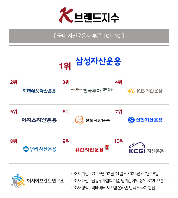 | ‘K-브랜드지수’ 자산운용사 부문 톱10. [사진=아시아브랜드연구소] |