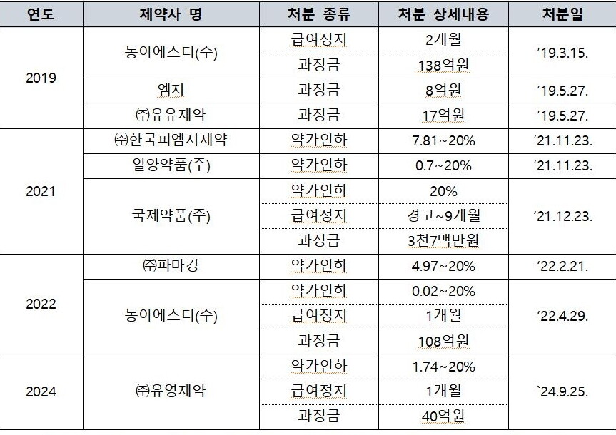 그러면서 그녀는 "정부는 솜방망이 처벌로 끝낼 것이 아니라 재발 방지를 위해 처분 강화·공공 입찰 제한·약가 삭감 등 실효적 제재를 더욱 과감히 적용해야 한다"고 강조했다.