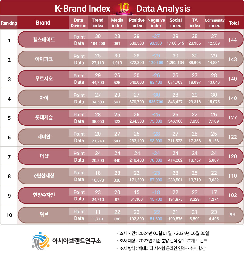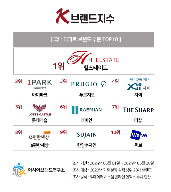 | ‘K-브랜드지수’ 아파트 부문 톱10. [사진=아시아브랜드연구소] |