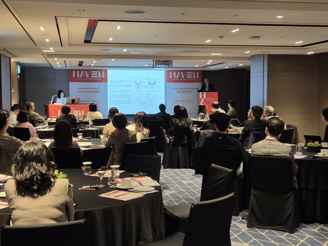 이어 신촌세브란스병원 안원기 교수는 국내 헴리브라 치료 환자들의 실제 임상 데이터에 대해 발표했다. 10일에는 인하대학교 박정아 교수가 연자로 나서 혈우병 환자의 생애주기별 치료 전략에 관해 설명했다.