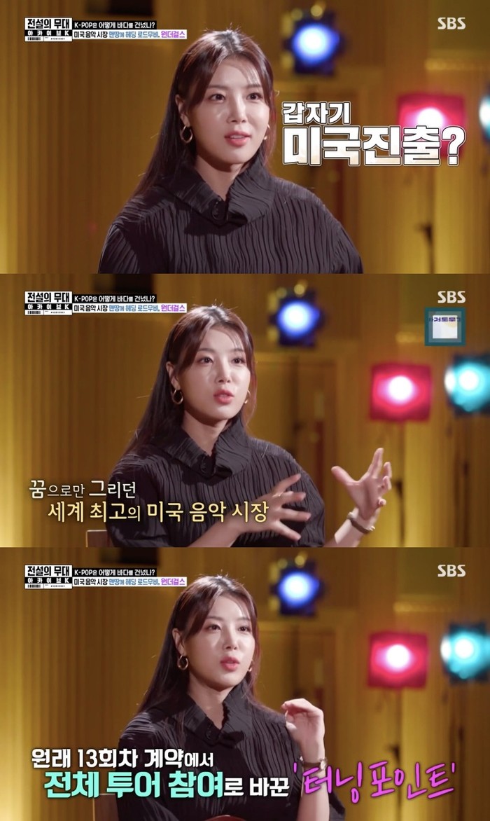 지난 14일 방송된 SBS 예능 프로그램 ‘전설의 무대-아카이브K’에 출연한 유빈은 박진영과 함께 원더걸스 미국 진출 비하인드 스토리를 공개했다.