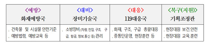 화재예방국, 119대응국, 장비총괄 등으로 변경