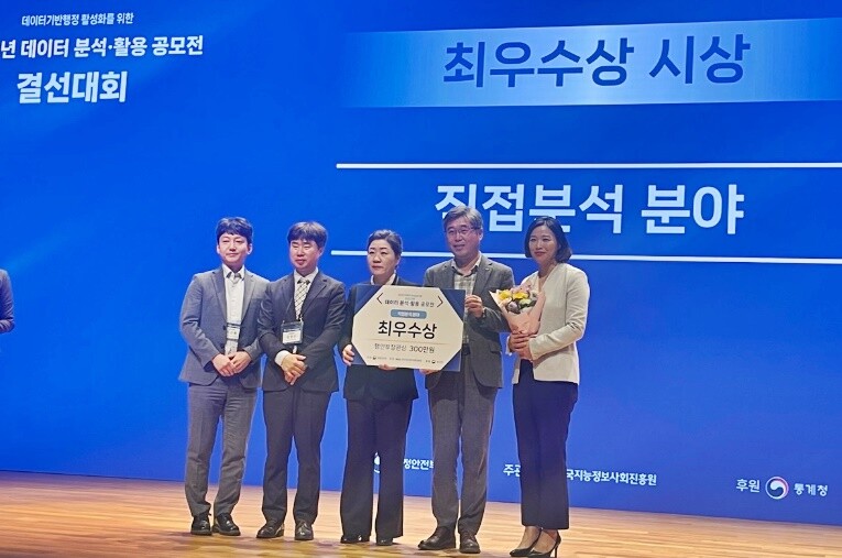 | LX한국국토정보공사 정보전략실은 행정안전부 주관의 2023년 데이터분석활용 공모전에 최우수상을 수상했다. |