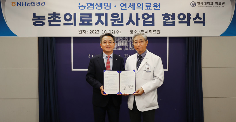 지난 12일, 김인태 NH농협생명 대표이사와 윤동섭 연세의료원 의료원장이 참석한 가운데 열린 협약식에서 양 기관은 농촌지역 의료취약계층에 대한 양질의 의료혜택 제공은 물론 국민보건 향상과 사회적 가치 실현에 뜻을 모으기로 했다.