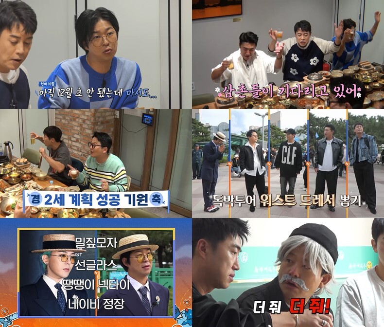 유쾌한 분위기 속, 이들은 푸짐한 ‘한정식 한상’으로 식사에 돌입한다. 그러던 중 김준호는 “난 술을 차츰 줄이다가 12월부터는 아예 끊으려 한다”고 깜짝 발표한다. 김지민과의 ‘2세’ 계획을 위해 금주를 할 뜻을 밝히는 것. 이에 홍인규는 “(촬영일 기준으로) 아직은 12월 아니니까 마셔도 돼~”라고 유혹하고, 김준호는 “그럴까?”라면서 술잔을 내밀어 웃음을 자아낸다.