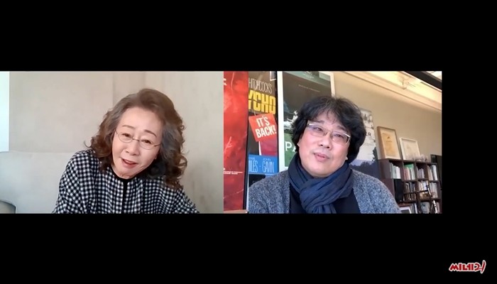 <미나리>는 희망을 찾아 낯선 미국으로 떠나온 한국 가족의 아주 특별한 여정을 담은, 2021년 전 세계가 기다린 원더풀한 이야기로 할머니 ‘순자’ 역을 맡은 배우 윤여정의 인터뷰에 봉준호 감독이 인터뷰어로 나섰다.