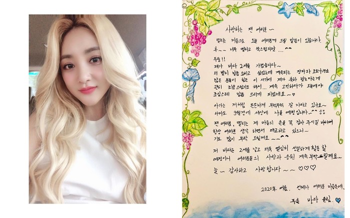 31일 바다는 자신의 인스타그램에 "사랑하는 팬 여러분 떨리는 마음으로 오늘 여러분께 드릴 말씀이 있습니다"라는 글로 시작하는 자필 편지를 공개했다.