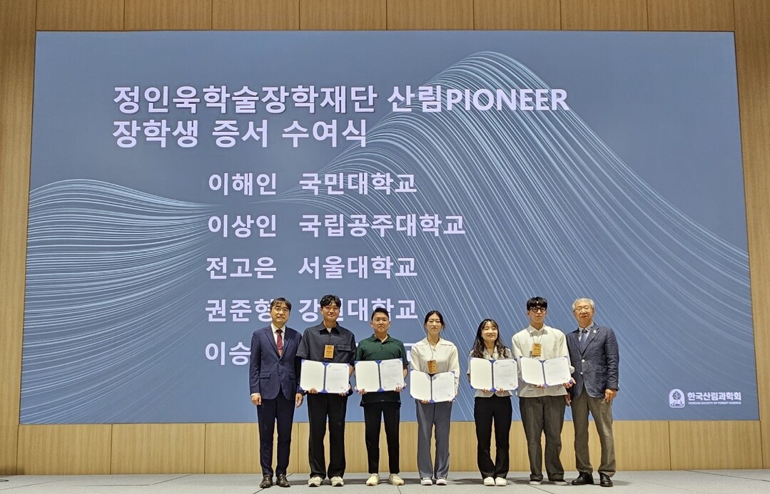[하비엔뉴스 = 홍세기 기자] 정인욱학술장학재단이 전북대학교 국제컨벤션센터에서 개최된 2023 한국산림과학회 하계총회 및 국제심포지엄에서 산림 Pioneer 육성 장학사업 2기로 선발된 장학생 5명에게 장학증서를 전달했다.
