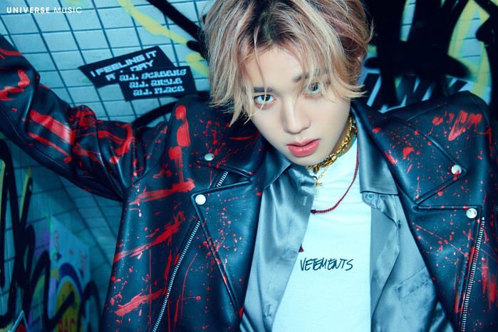 공개된 2장의 콘셉트 포토 속에는 강렬한 스타일의 가죽 재킷을 입고 카리스마 넘치는 눈빛으로 카메라를 응시하는 박지훈의 남성적인 모습이 담겨 있다.