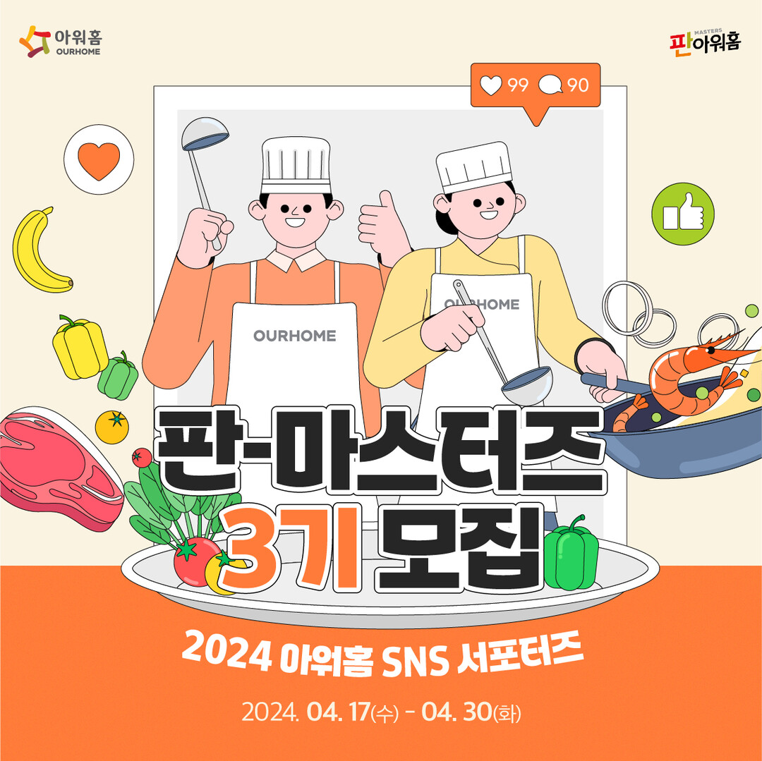 [하비엔뉴스 = 윤대헌 기자] 아워홈은 오는 30일까지 ‘판아워홈-마스터즈 3기’를 모집한다고 22일 밝혔다.