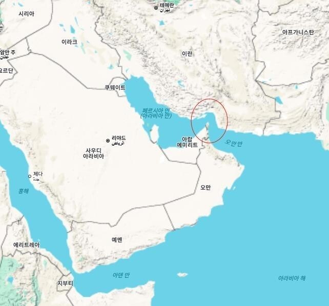 블룸버그통신에 따르면 페르시아만 방향으로 호르무즈 해협 초입에 들어서던 코스위즈덤레이크호, 사우스로열티호 등 초대형 유조선 2척이 미국의 이란 폭격 직후인 22일(현지시간) 호르무즈 해협 초입에서 항로를 정반대 아라비아해 방향으로 급변경했다.