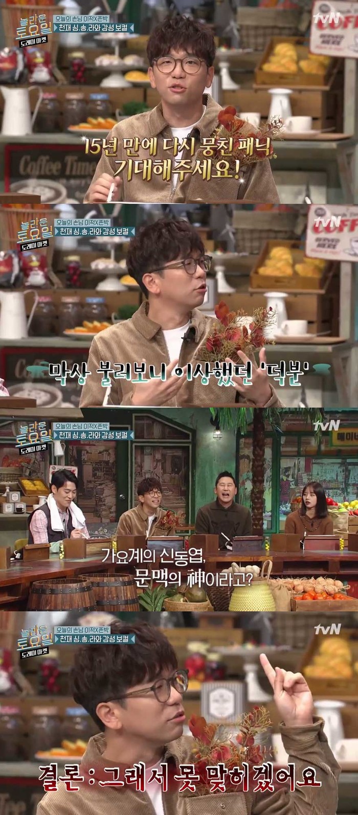이적이 지난 7일 오후 방송된 tvN ‘놀라운 토요일’에 출연, 이날 방송에서 오는 11일 발매되는 신곡 ‘돌팔매 (feat. 김진표)’에 대한 이야기를 나눴다.