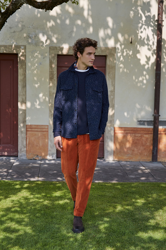 또 다양한 크기와 너비의 코듀로이 소재가 아우터와 팬츠, 이너에 걸쳐 다양하게 활용된다. 얇고 유연한 가죽 소재가 다채로운 아이템으로 보여지고, 트렌치코트, 맥코트 등 아웃웨어로 확장된다.