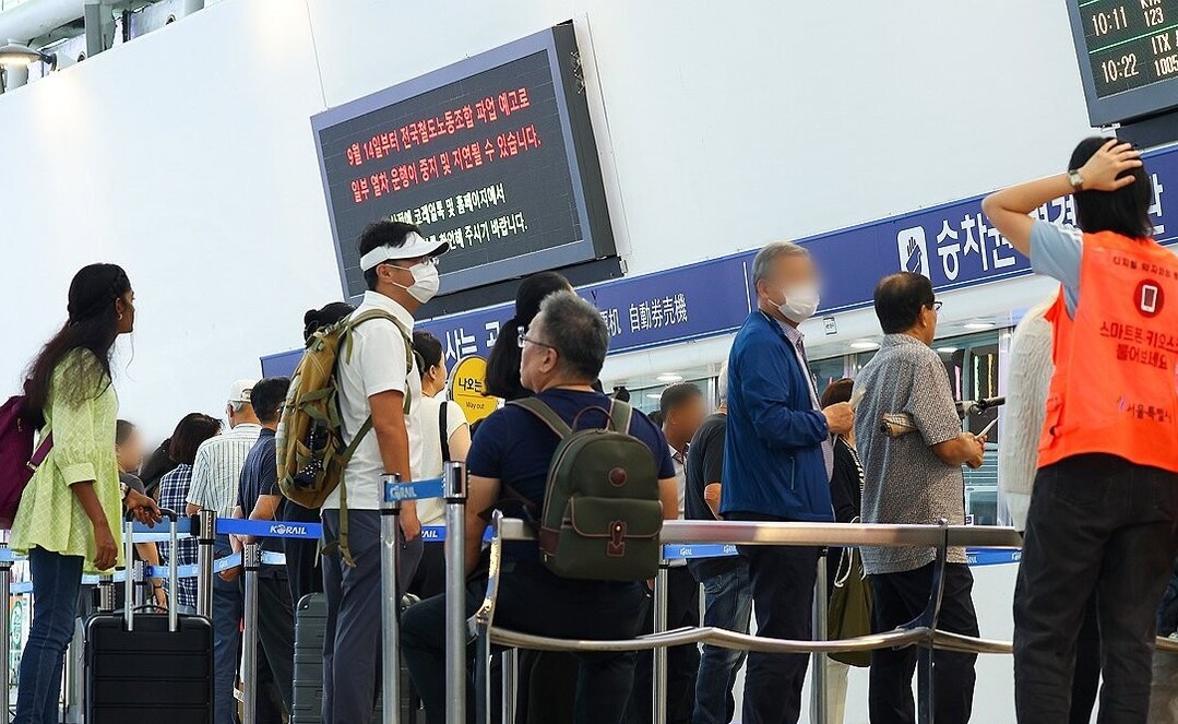 | 철도노조 파업으로 인한 서울역의 열차 운행 조정 안내. [사진=연합뉴스] |