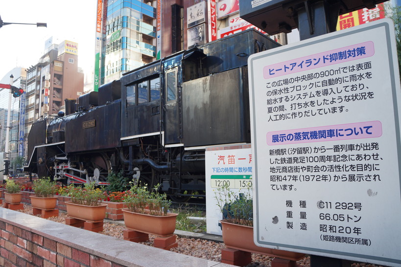 필자가 2013년 사이타마(埼玉)시 철도박물관에서 열린 제1회 세계철도박물관 컨퍼런스에 참석하기 위해 방문한 신바시역 광장에는 옛 신바시(현 시오도메 汐留)역 출발 첫 열차 100주년을 기념해 1972년부터 전시되고 있는 증기기관차가 자리 잡고 있었다.