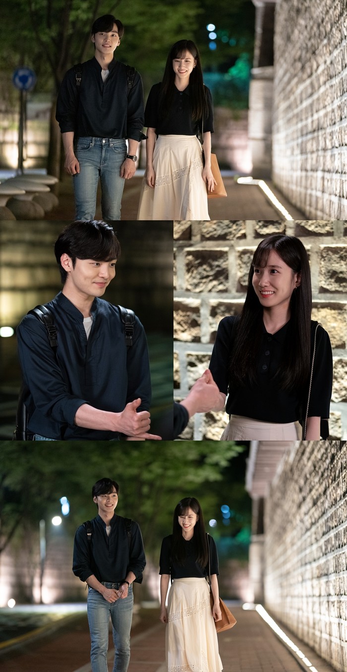공개된 사진 속 채송아와 박준영은 달빛 아래 덕수궁 돌담길을 나란히 걷고 있다. 손등이 닿을락 말락 밀접한 두 사람의 거리는 가까워진 사이를 짐작하게 한다. 또 도란도란 대화를 나누다가도 수줍게 웃음을 터뜨리는 두 사람의 모습은 보는 이들의 마음을 살랑살랑 간지럽힌다. 여기에 손가락 약속까지 하는 모습이 과연 이들이 만나서 어떤 대화를 나눈 것인지 호기심을 샘솟게 한다.