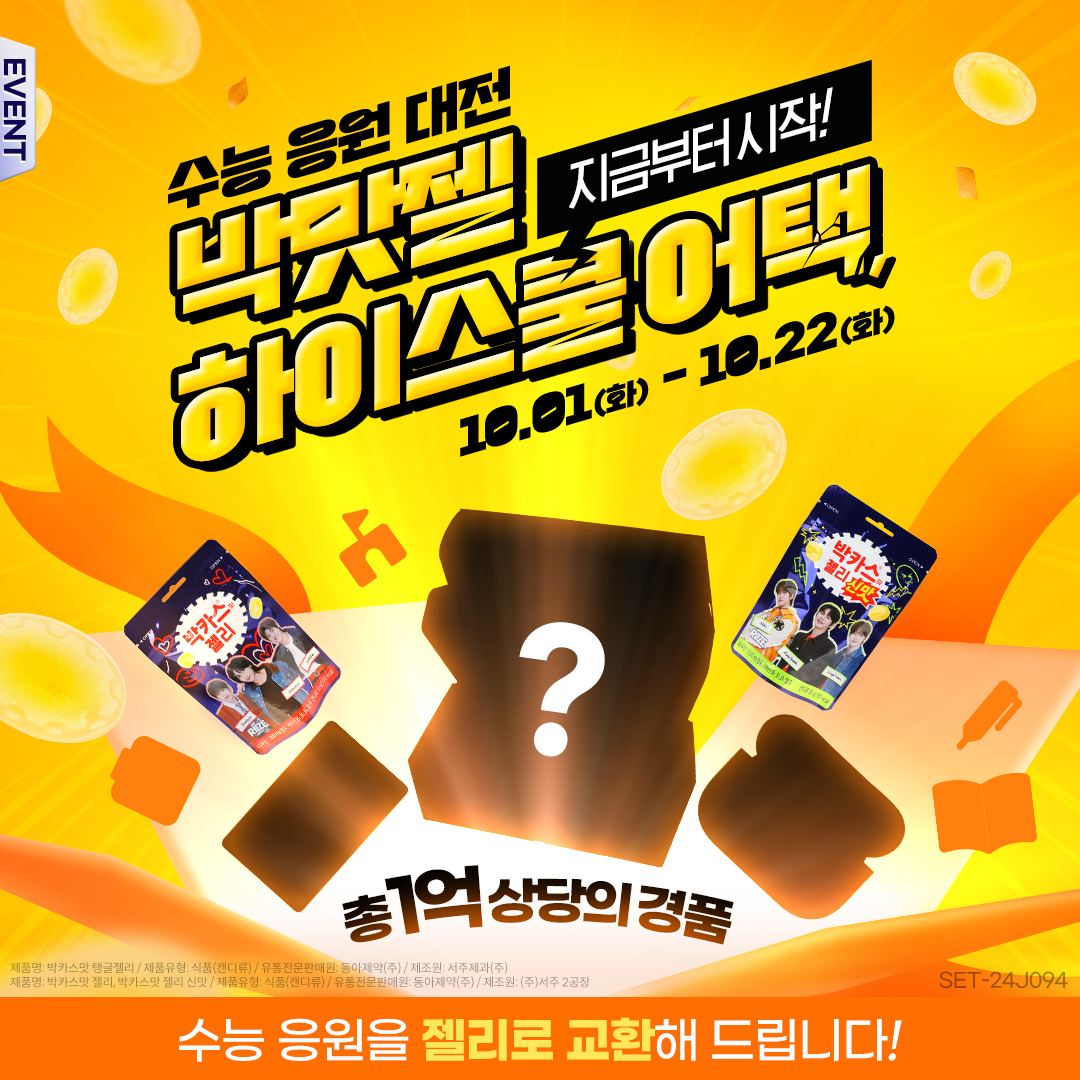동아제약 관계자는 “다가오는 11월, 수능을 열심히 준비하고 있는 대한민국 수험생 여러분을 응원하고자 해당 프로모션을 기획하게 됐다”며 “앞으로도 박카스맛 젤리와 함께 즐길 수 있는 다양한 이벤트를 선보일 예정이다”라 말했다.